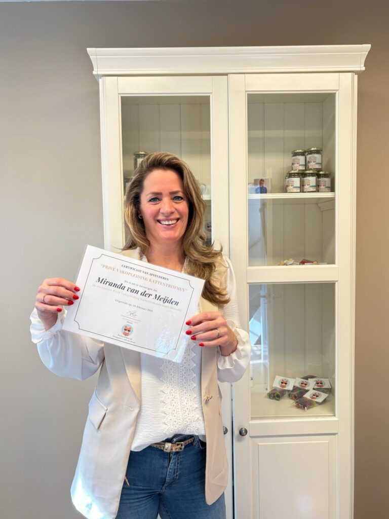 Ik heb altijd een droom gehad om te werken met dieren. Na een tijdje nagedacht te hebben(heel erg lang) kwam mijn vriend op het geniale idee om een opleiding kattentrimmen te gaan volgen. Dit heb ik gedaan en hiervoor ben ik geslaagd. Mijn opleiding heb ik met heel veel plezier gevolgd bij Desiree de Rue van Perfectekat.nl Tijdens mijn opleiding ben ik door haar klaar gestoomd om mijn mooie trimsalon te kunnen openen. Hier in Dordrecht kattentrimsalondrechtsteden.nl. Een droom die voor alle katten in omgeving Dordrecht uitkomt!